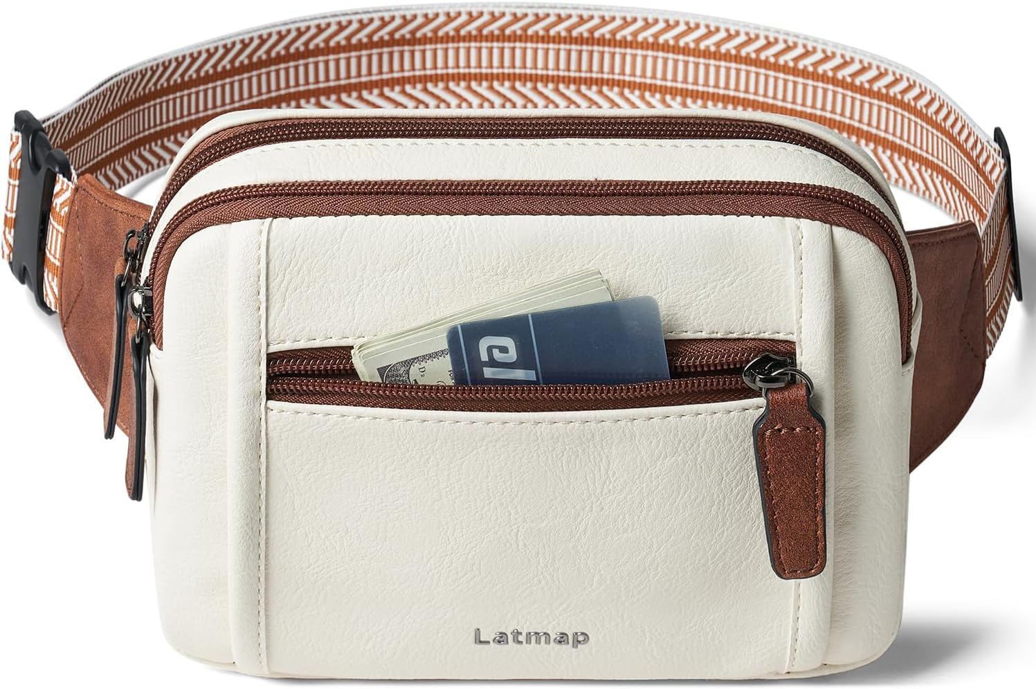 3L TRIPLE ZIP Fanny Packs Belt Bag For Women Men Crossbody Waist Pack Sling Chest Bum Travel Bag Purse Faux Leather Fashion Cute Beige