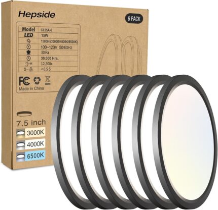 6PACK LED Flush Mount Ceiling Light, 3CCT Selectable 3000K-4000K-6500K & 100W Equivalent Modern Kitchen Ceiling Light Fixture 15W 1500Lm 7.5 Inch for Bathroom Closet Bedroom Hallway,NOT-DIMMABLE