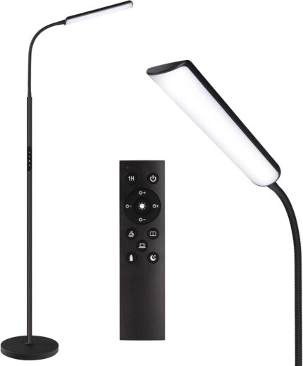 Floor lamp, 15w/1000lm Bright LED Floor Lamp with Stepless Adjustable 3000K-6000K Colors and Dimmer, Remote and Touch Control, Adjustable Gooseneck Floor Lamp for Living Room