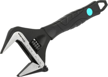 DURATECH 10-Inch Adjustable Wrench, Wide Jaw Opening Black Oxide Finish Plumbing Wrench, CR-V Steel, SAE and Metric Scale Marked, Ergonomic Grip