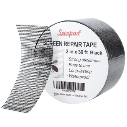 Black Window Screen Repair Tape, 2 in X 30 FT (360IN) Screen Repair Kit for Windows or Doors, Strong Adhesive Fiberglass Mesh Patch Tape