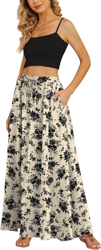 Yincro Women’s Flowy Maxi Skirt Summer Pleated High Waisted Casual Long Skirts with Pockets