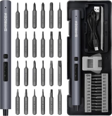 SHARDEN Mini Electric Screwdriver, 29 in 1 Small Electric Screw Driver Kit with 24 Magnetic Bits, Precision Cordless Repair Tool for Phone, Camera, Laptop, Watch