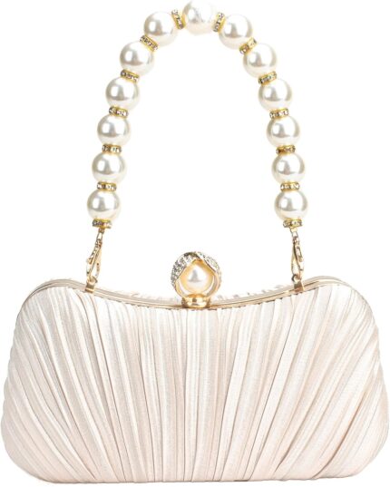 CHARMING TAILOR Clutch Evening Bag Elegant Pleated Satin Formal Handbag Simple Classy Purse for Women