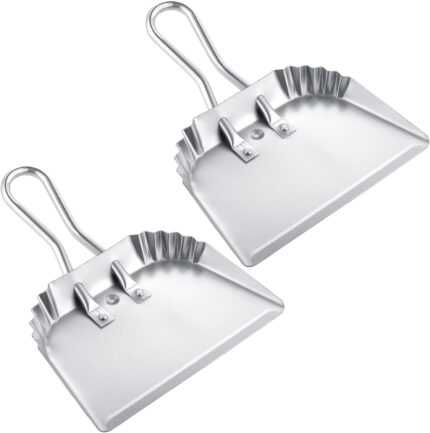 Mumufy 4 Pack 12 inch Heavy Duty Metal Dustpan Large Wide Dust Pans for Household Handheld Wide Scooper and Debris Cleaning Tool Ideal for Home and Commercial Use (Silver)