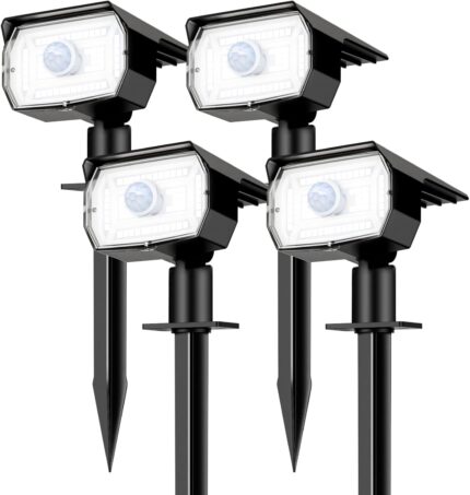 nipify Solar Lights Outdoor Waterproof, Motion Sensor Spot Lights- 4 Pack/56 LED/3 Modes Solar Powered Spotlights 2-in-1 Auto On/Off Landscape Lighting for Outside Yard Wall Garden, Cool White