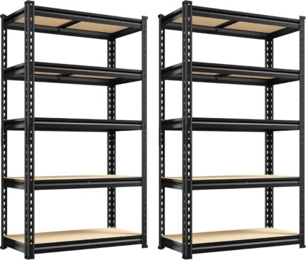 REIBII Set of 2 Storage Shelves 5 Tier Garage Shelving Heavy Duty Metal Shelving 2000LBS Garage Shelves Adjustable Metal Shelf for Kitchen Warehouse Pantry Commercial Use 27.6″ Wx11.8 Dx60 H