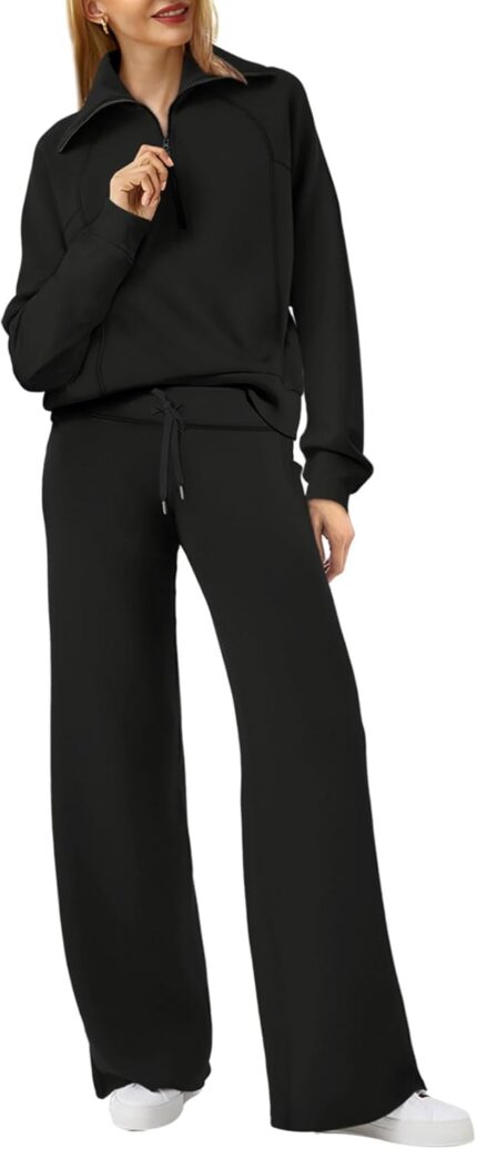 Price: (as of – Details) Lounge Sets For Women 2025 Half Zip Sweatshirt And Wide Leg Sweatpant 2 Piece Outfits