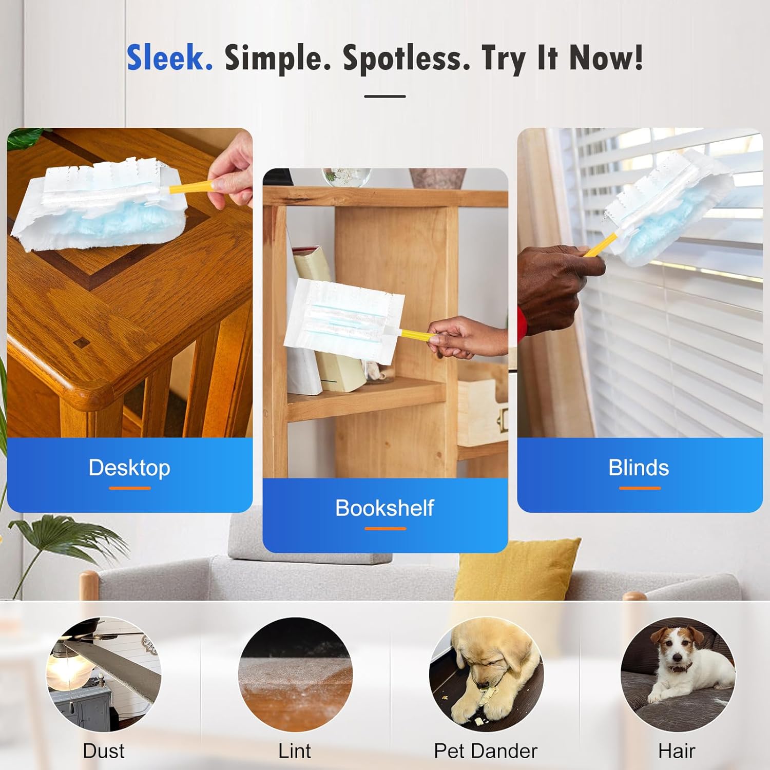 Compatible: The set include 50 disposable feather dusters and a handle. And it also seamlessly compatible with the Swiffer Retractable Handle and Super Retractable Handle