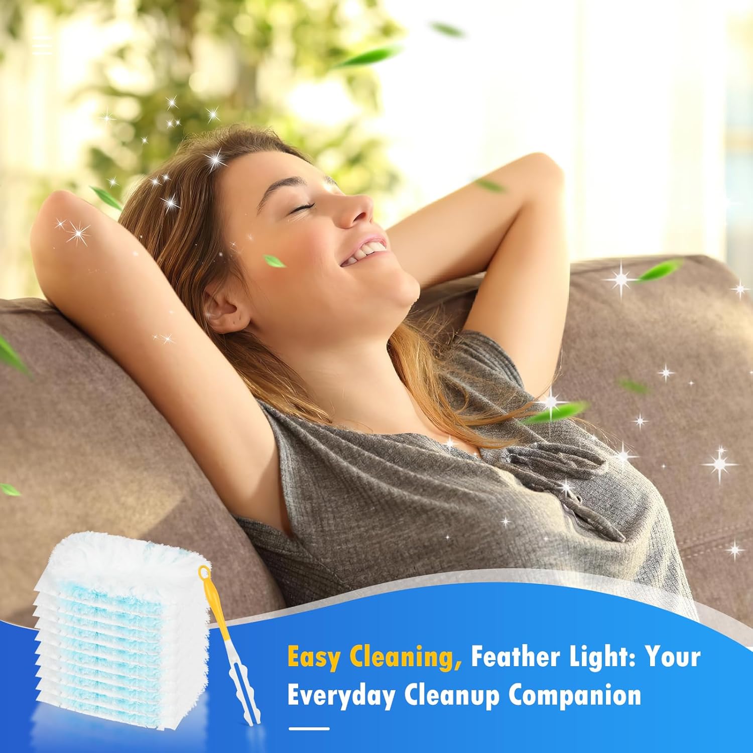 50 Count 180° Multi-Surface Feather Duster Refills Compatible with Swiffer Handle, Heavy Duty Duster Replacement with 1 Handle