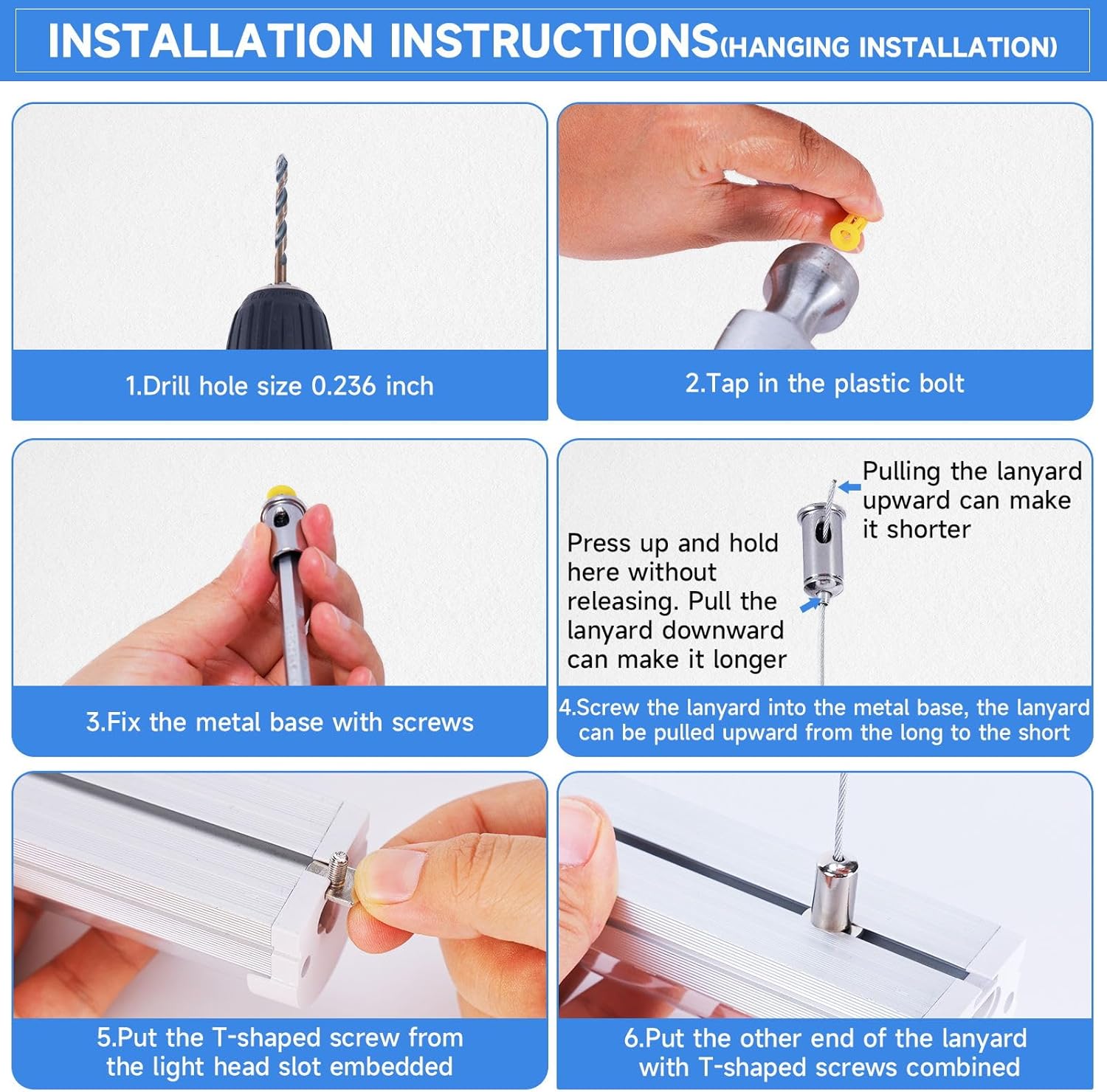 The 8FT led shop lights could plug and play. With Hanging & Ceiling Clips. led light fixtures which can be surface mounted to ceilings or walls (by clips furnished) ,or hang to ceiling. and then could be connected to power cables. These led shop light fixtures are very lightweight and can be mounted in any orientation. (vertical and horizontal).
