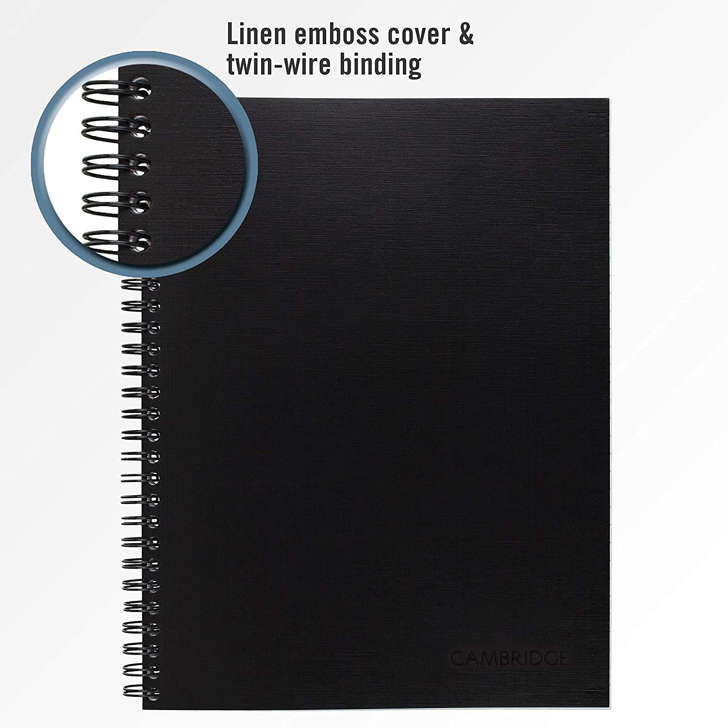 Pages are perforated for clean and easy removal; Notebook is wirebound with black, linen covers