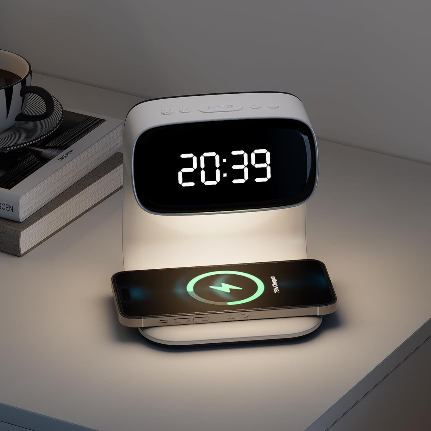 【3in1 Multi-functional professional design】Digital alarm clock, 15W Wireless Charger dock, night light. The smart alarm clock lamp wireless charger makes it a multifunctional.Supports any device with wireless charging capability that comes with the ios system
