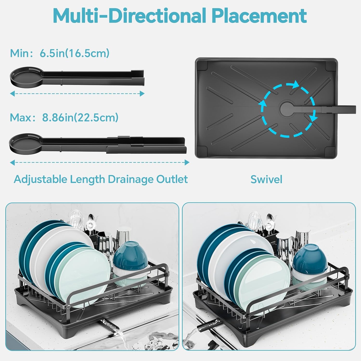 Dish Drying Rack Kitchen – Dish Racks for Kitchen Counter Space-Saving, Dish Drainer with Automatic Drain and Adjustable Spout, Dishwasher Rack with Cutlery Holder, 16.5″ D x 11.6″ W x 6.6″ H