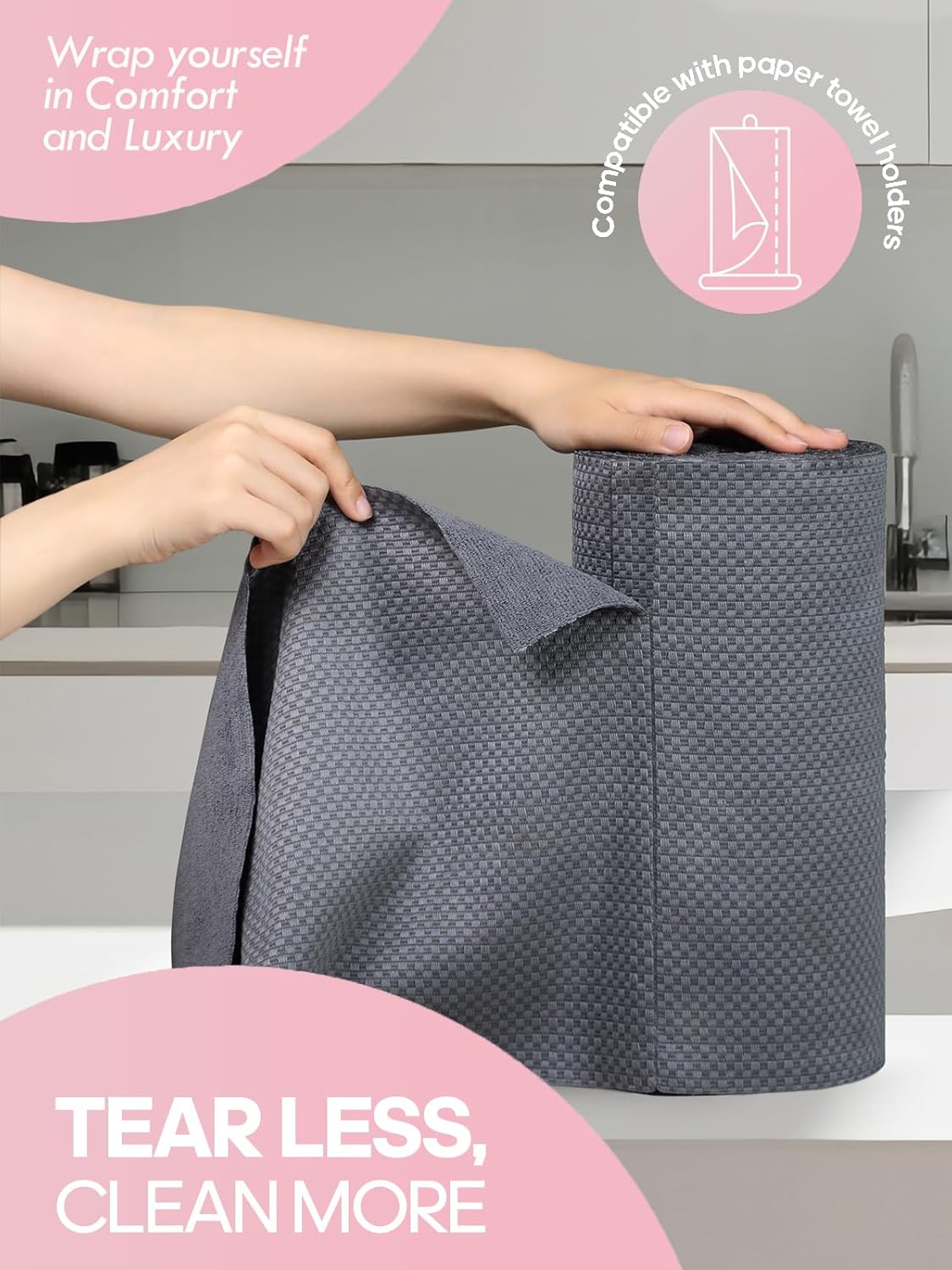 [Larger & Thicker Paperless Towels] Dual-sided 18” by 12” towel design, bring both elegance and effective cleaning results to daily household need, adding style to your kitchen and function and personality to your home