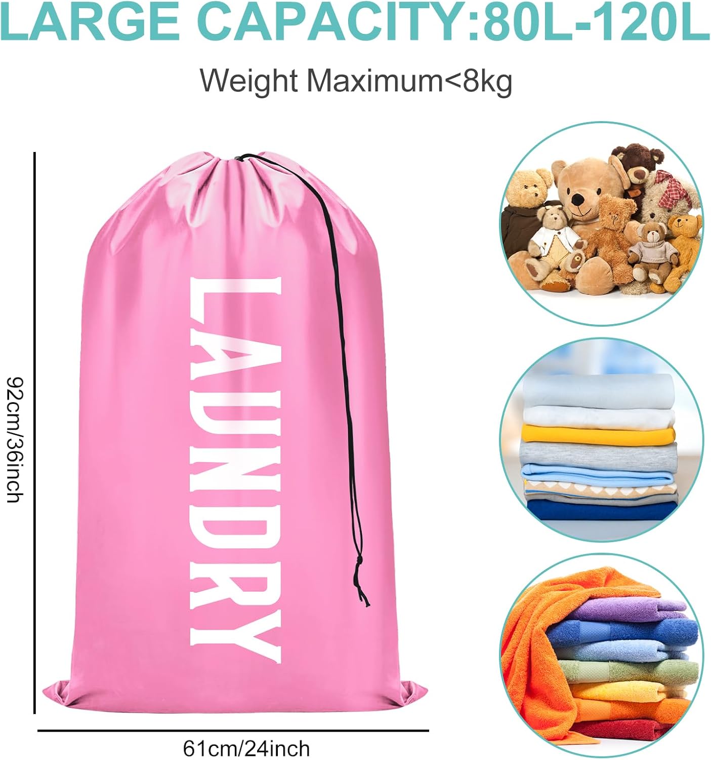 Fiodrimy 2 Pack XL Travel Laundry Bag, Machine Washable Dirty Clothes Organizer, Large Enough to Hold 4 Loads of Laundry, Easy Fit a Laundry Basket (Pink+Blue, 24″ x 36″)