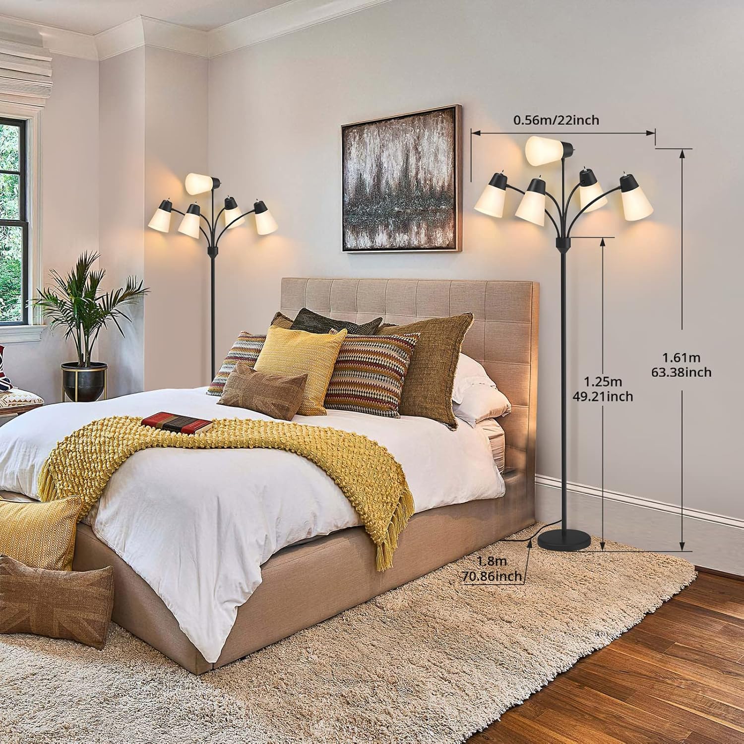 Five adjustable Gooseneck Arms: This tall floor lamp comes with flexible gooseneck arms that allow for great flexibility in lighting area. The 5 arms are 360° bendable and you can freely adjust the lamp heads up and down or point it in different directions to add tons of light. The 5-light tree floor lamp is perfect for any task, work or sewing when you need night light or reading light.