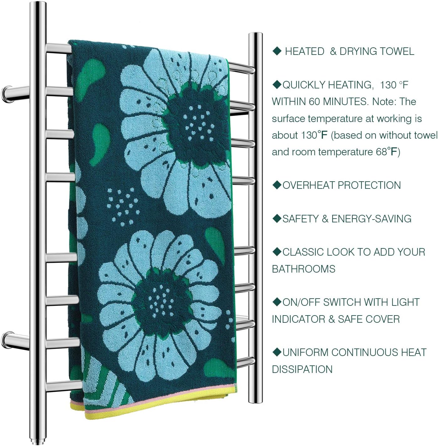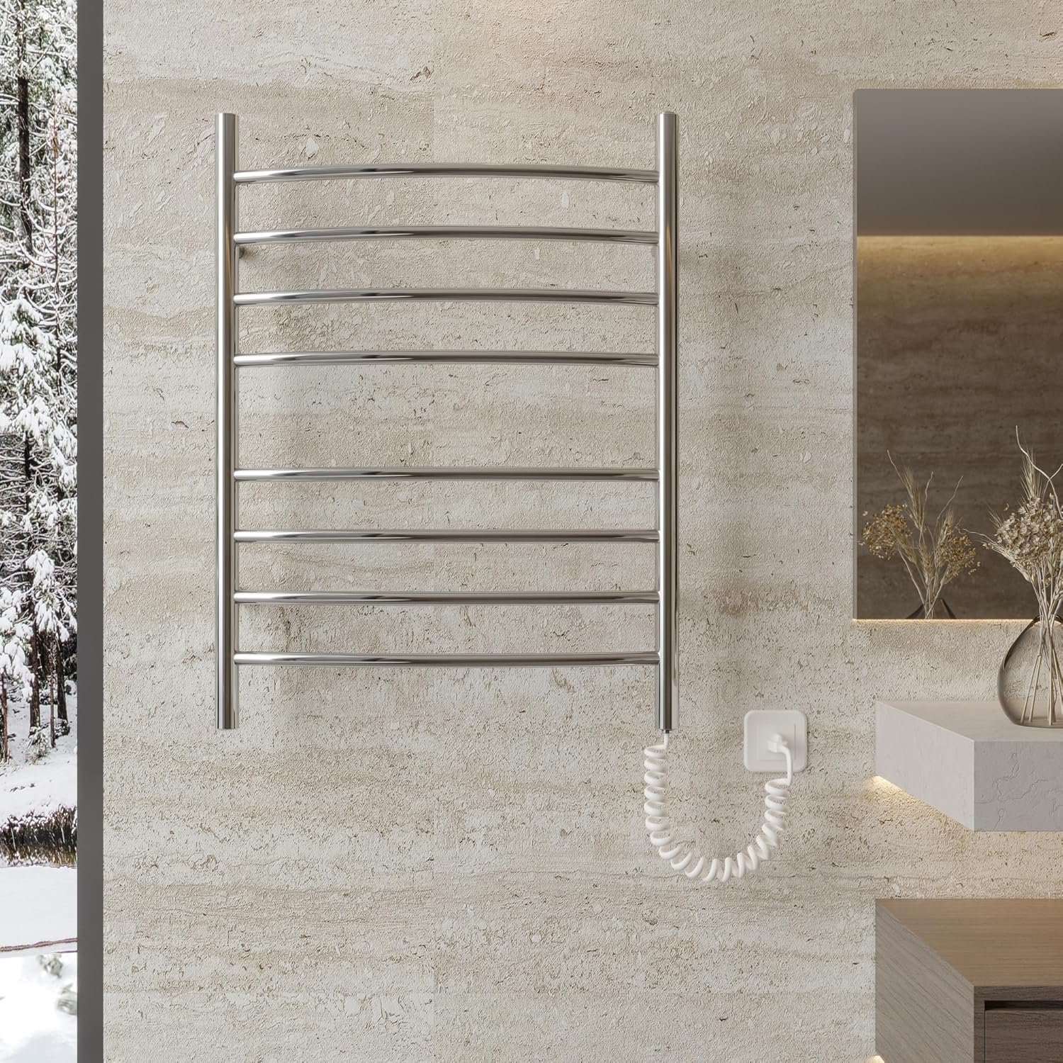 EVEN HEAT DISTRIBUTION WITH CURVED BAR DESIGN: Featuring modern curved bars, this towel warmer enhances any bathroom’s style. Constructed entirely of 304 stainless steel, it offers easy cleaning and superior rust and corrosion resistance