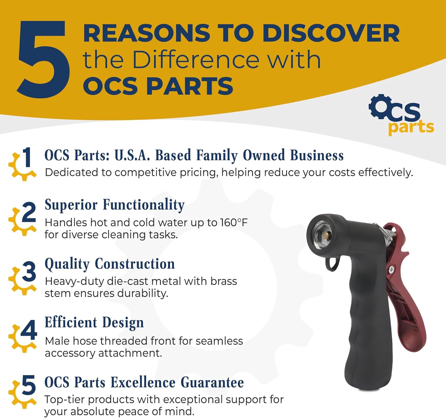 Quality Construction: The OCS Parts nozzle is made from heavy-duty die-cast metal with an overmold, and reinforced with a brass stem, promising unmatched durability and resistance to rough usage and high pressures.
