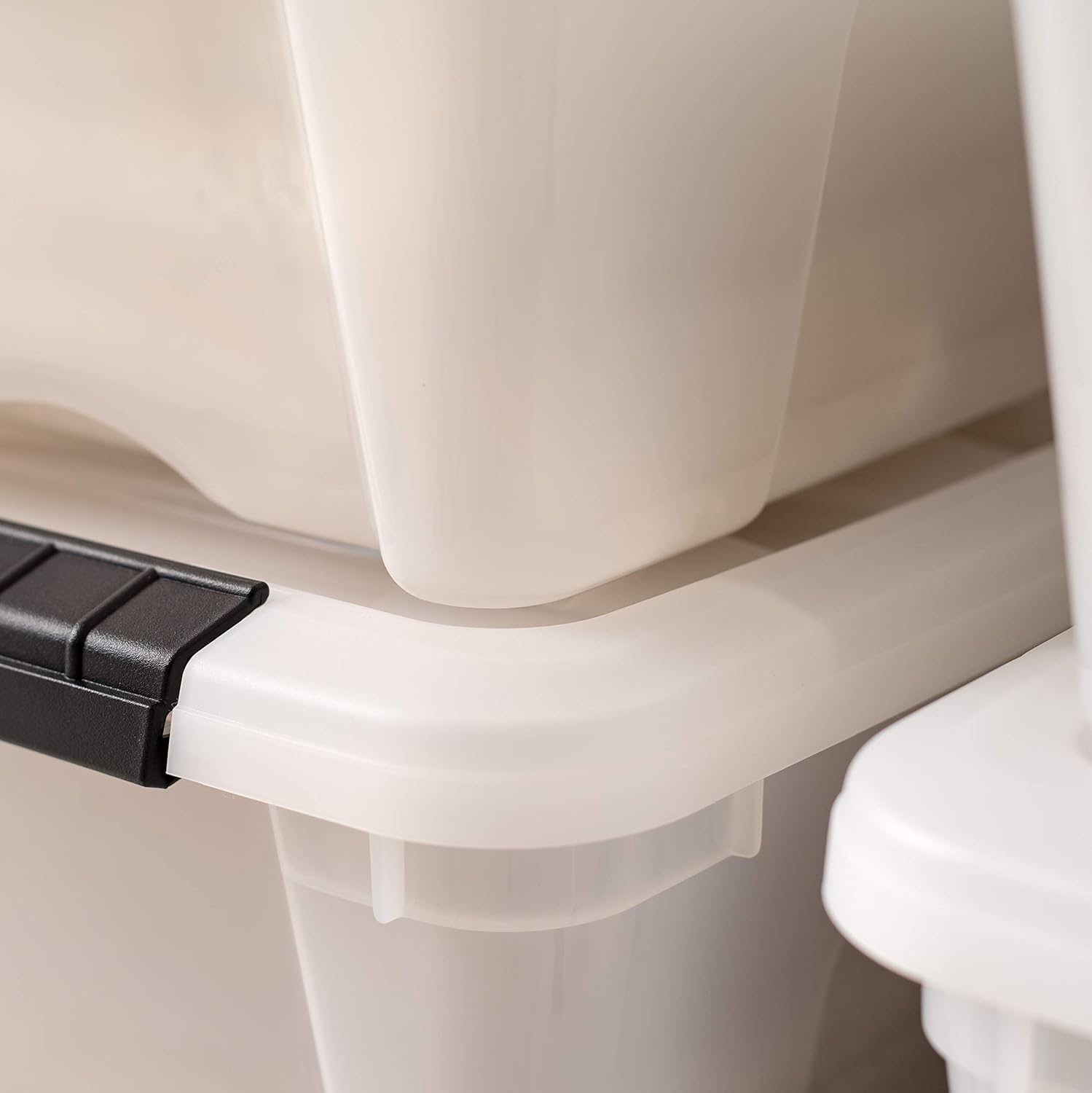 IRIS USA 13 Qt Stackable Plastic Storage Bins with Lids, 6 Pack – BPA-Free, Made in USA – Discreet Organizing Solution, Latches, Durable Nestable Containers, Secure Pull Handle – Pearl
