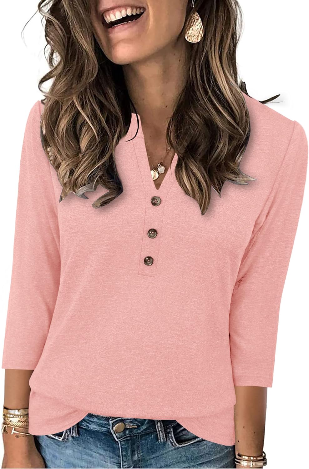 Womens Tops Dressy Casual 3/4 Sleeve Shirts V Neck T Shirts for Women Loose Fit