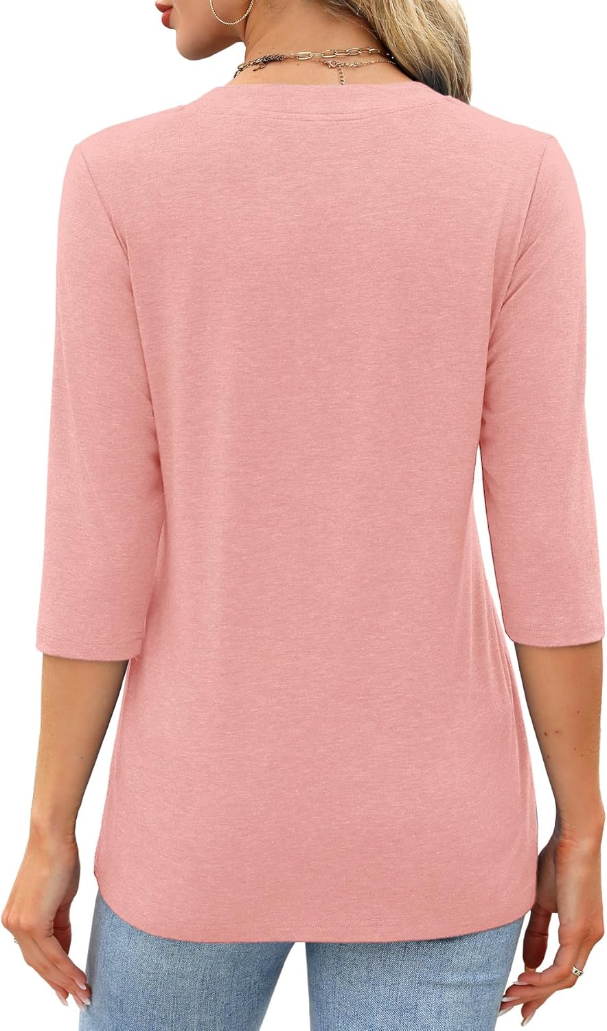 Womens Summer Tops 3/4 Sleeve Casual Blouses Trendy Tunic Tops for Leggings