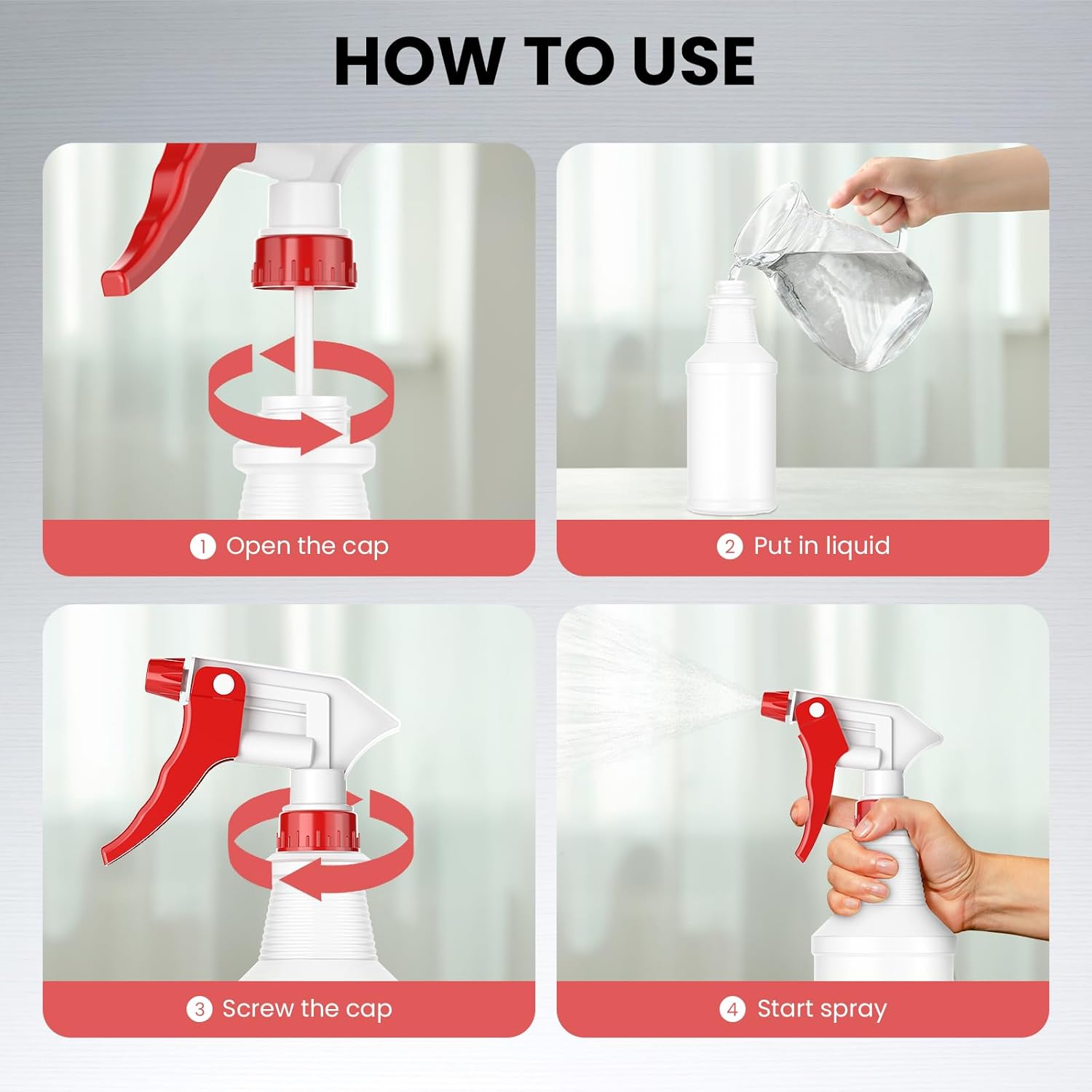 MULTIFUNCTIONAL BLISS- Liba’s 16oz 4 pack lightweight spray bottles are semi-opaque and come equipped with an adjustable spray nozzle, making them perfect to use for various household, pet, cleaning, and beauty purposes. Decant your favorite solutions or create your own cleaners, linen spray, hair treatment, pet spray, beauty recipes & more. Easy to refill, the options are limitless!