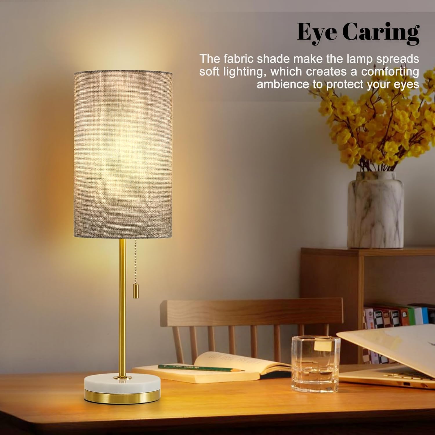 Luvkczc Minimalist Table Lamp Set of 2, Nightstand Lamp for Bedroom Living Room, Modern Pull Chain Bedside Lamp with Marble Base, Fabric Shade, Small Desk Lamp for Home, Office, Reading,Grey