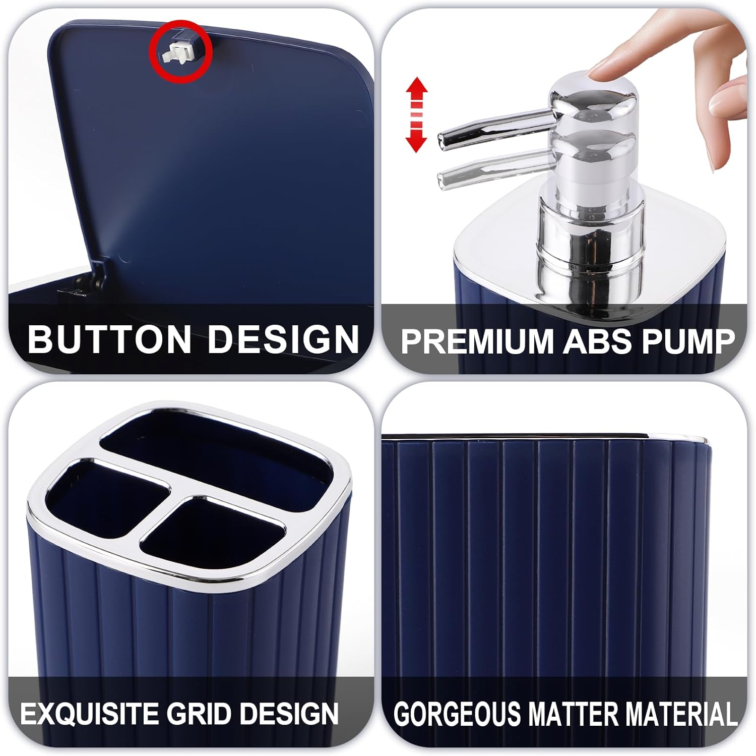 Navy Blue Bathroom Accessories Set – Gorgeous Bathroom Set, 10PC Bathroom Accessory Set, Toilet Brush, Trash Can, Qtip Holder Dispenser & Soap Dispenser