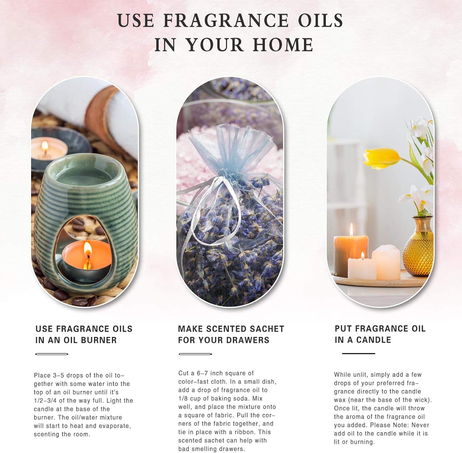 High Quality Glass Bottle with Free Dropper: The fragrance oils come in high-quality glass bottles and are infused with a UV coating to protect the fragrance oils from sunlight and degradation. It also comes with a dropper for easy use.