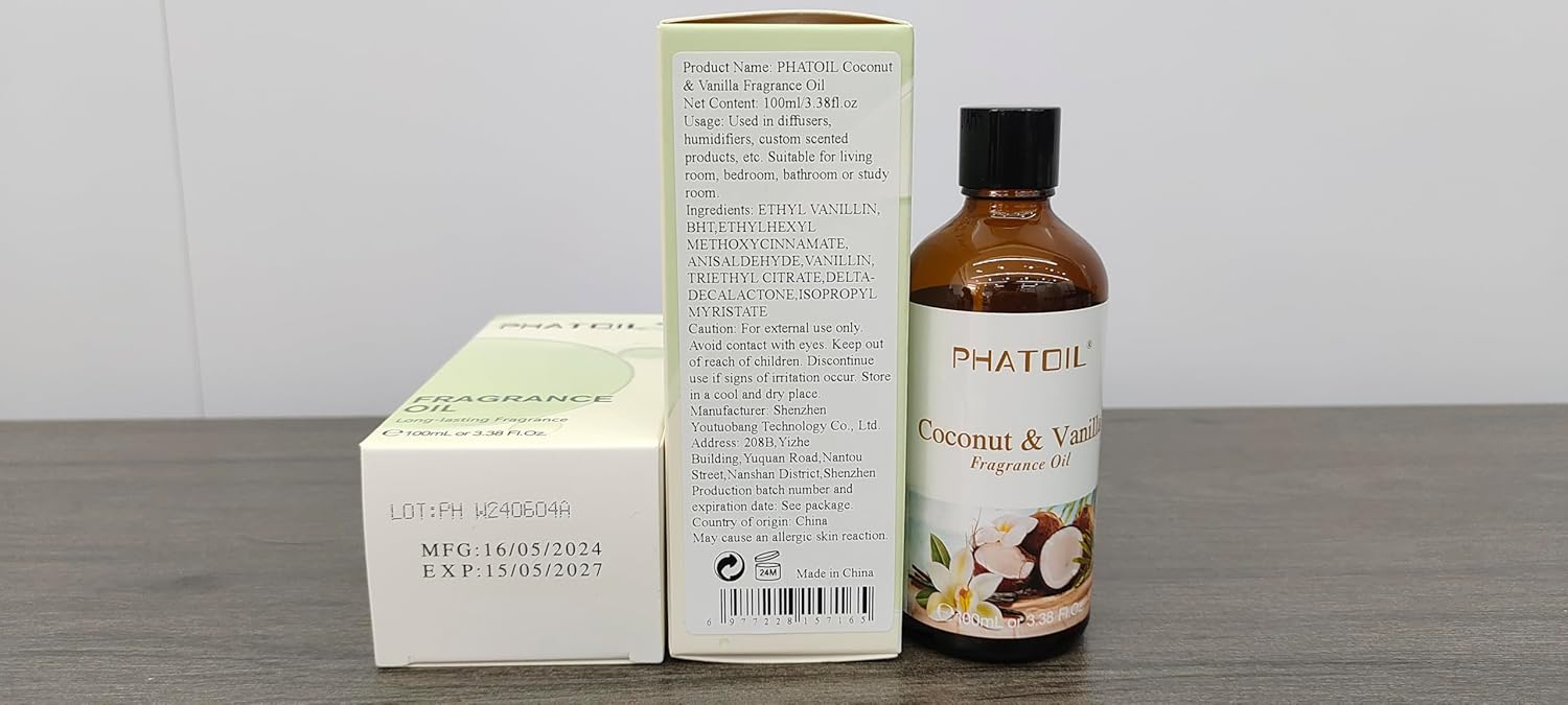 PHATOIL 3.38FL.OZ Coconut & Vanilla Fragrance Oils for Aromatherapy, Essential Oils for Diffusers for Home, Perfect for Diffuser, Yoga, DIY Candle and Soap Making – 100ml
