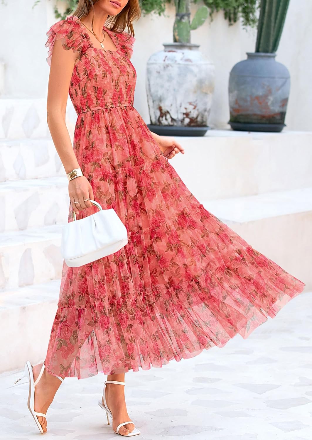 PRETTYGARDEN Women’s High Waist A Line Dress Ruffle Summer Flowy Midi Dresses