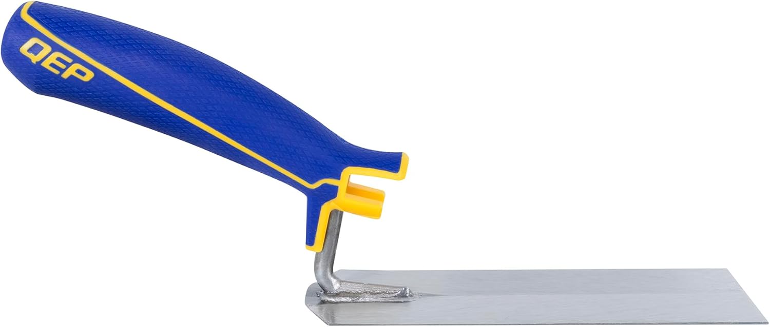 The QEP 6 in. Margin Trowel easily fits into mixing buckets and should be used to scoop and spread material, such as thinset and adhesive, in hard to reach areas. The non-slip, rubber grip reduces job fatigue for comfortable, repeat use. Crafted from tempered and hardened steel, this margin trowel is designed for long lasting use. Applying material underneath toe kicks and cabinets becomes much easier with the QEP 6 in. Margin Trowel.