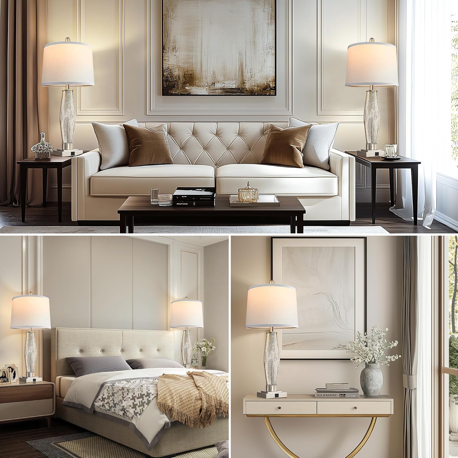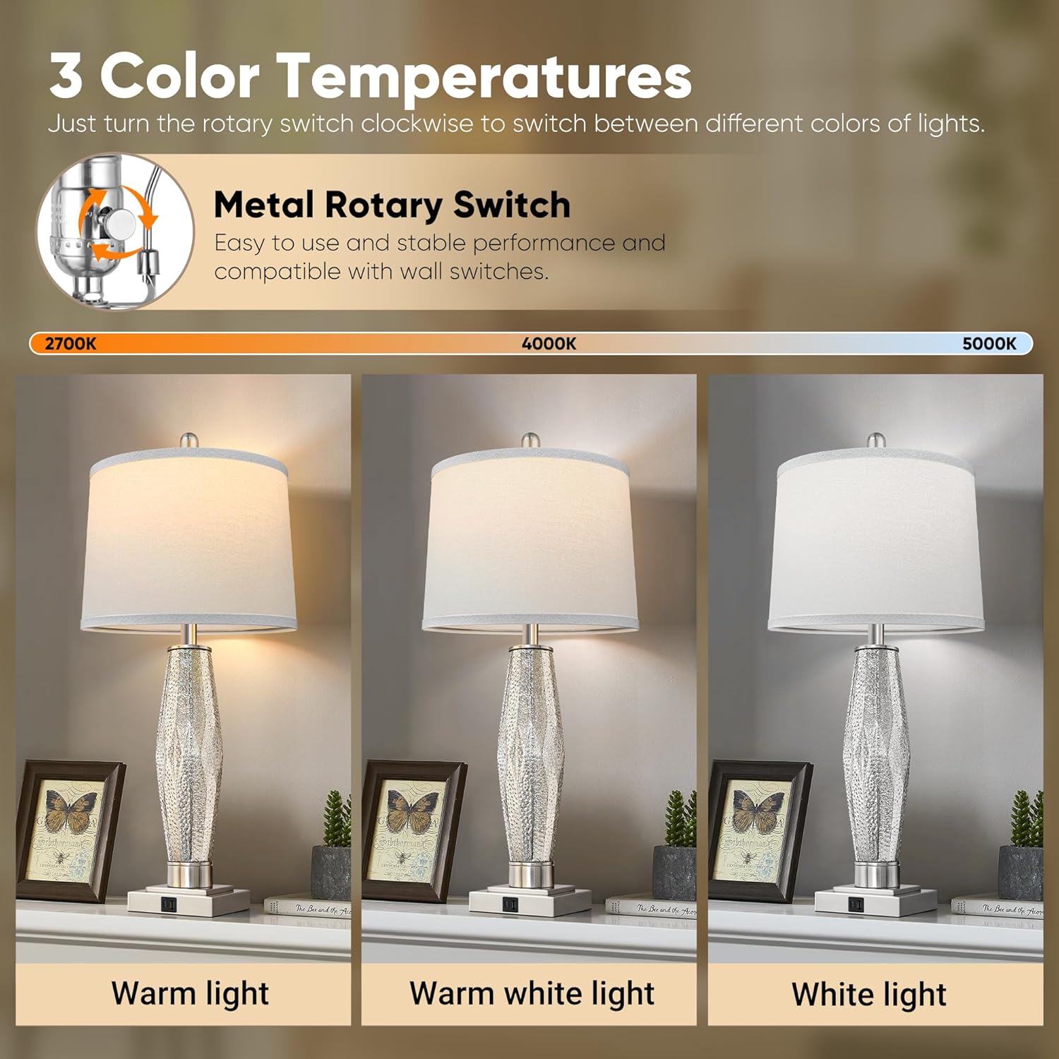 【Convenient & Well Quality】: The bedroom lamps’ whole height is 28 inches, shade with white lining, the thick glass match with the solid base, don’t worry about dumping. Thanks to the 60-inch power cord, you can put the table lamps for living room set of 2 at more place,no matter how far away the socket is. Thanks to its rotary switch, you can control the side table lamp easily of your bed or couch or use a wall switch. Don’t worry about switch sensitivity,making your dairly life worry-free.