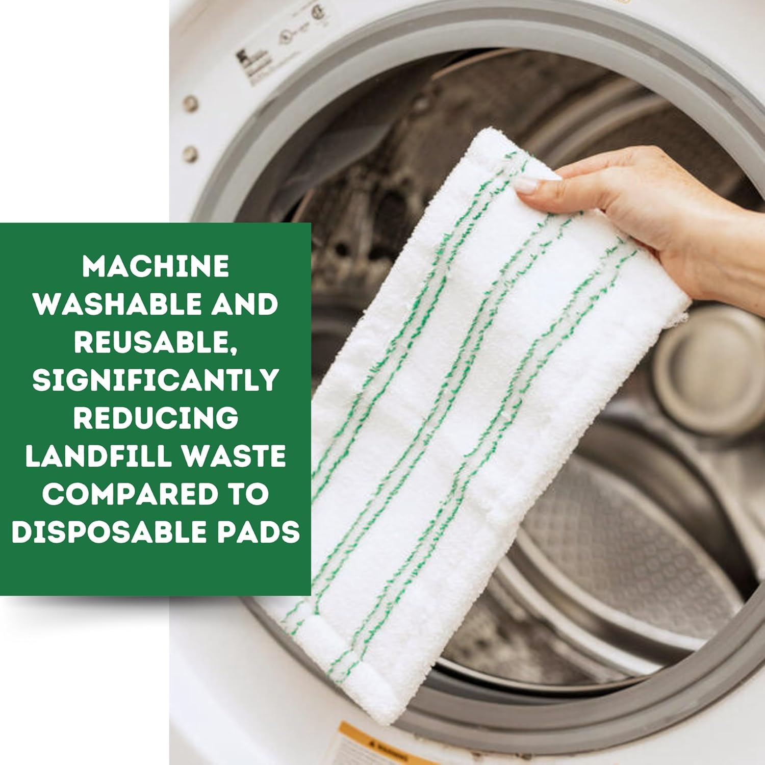 SUSTAINABLE MOP PAD: Thoroughly rinse pad with clean water after each use. Pad is machine and hand washable with mild soap. Do not use Bleach or fabric softener – and always line dry