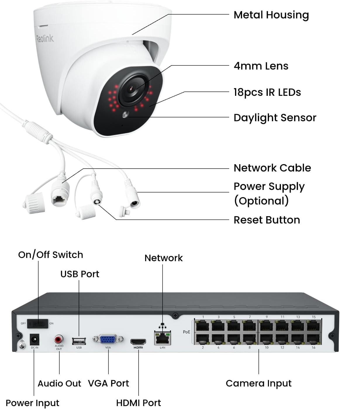 Reliable 24/7 Recording & Massive Storage – Comes with a pre-installed 4TB HDD for nonstop 24/7 or motion-triggered recording. Easily expand storage with an additional HDD (up to 8TB), supporting a total capacity of up to 16TB.