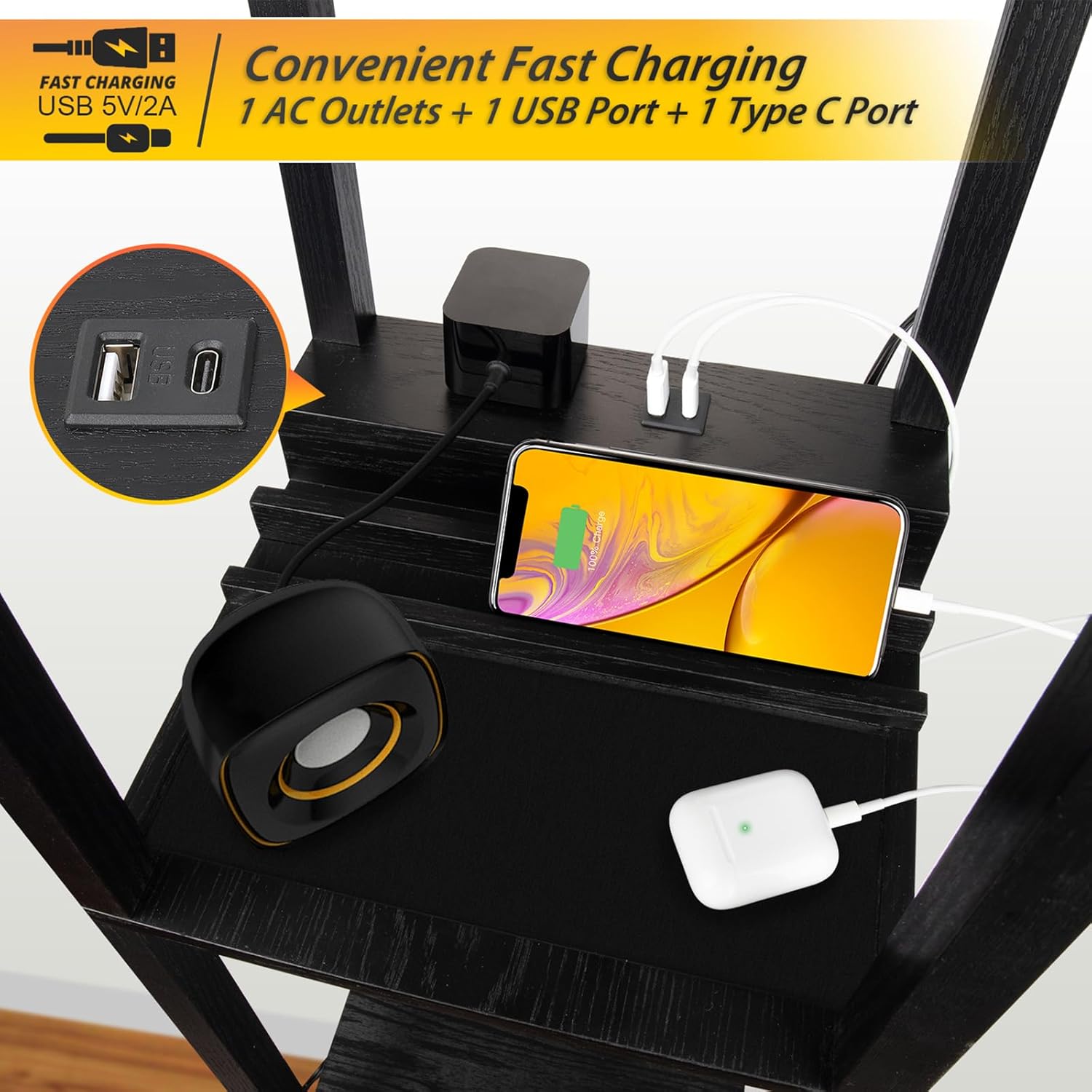 Fast Charging Function: The biggest innovation of the latest generation of shelf lights compared to previous models is the addition of 1 fast-charging 5V/2A USB ports & 1 type c port and a power outlet, which allows you to charge three devices such as smart phones, kindle, iPad, and so on at the same time. This will reduce the clutter of charging wires in your living room or bedroom and improve the convenience of your life.