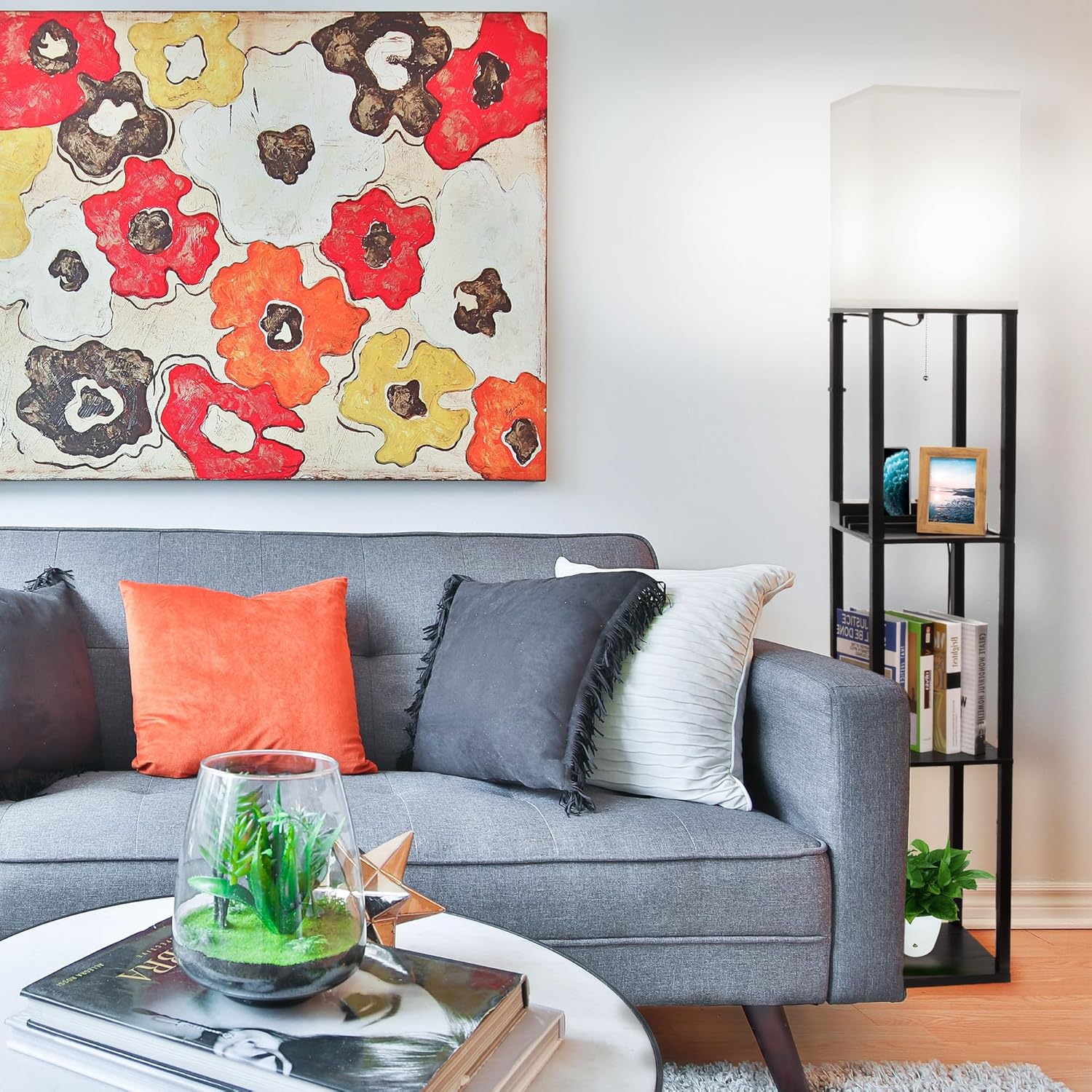 Wide Applications: Beautiful and practical shelf floor lamps can be placed next to the sofa, TV, fish tank in the living room, bed nook in the bedroom and etc to meet your home decoration needs.