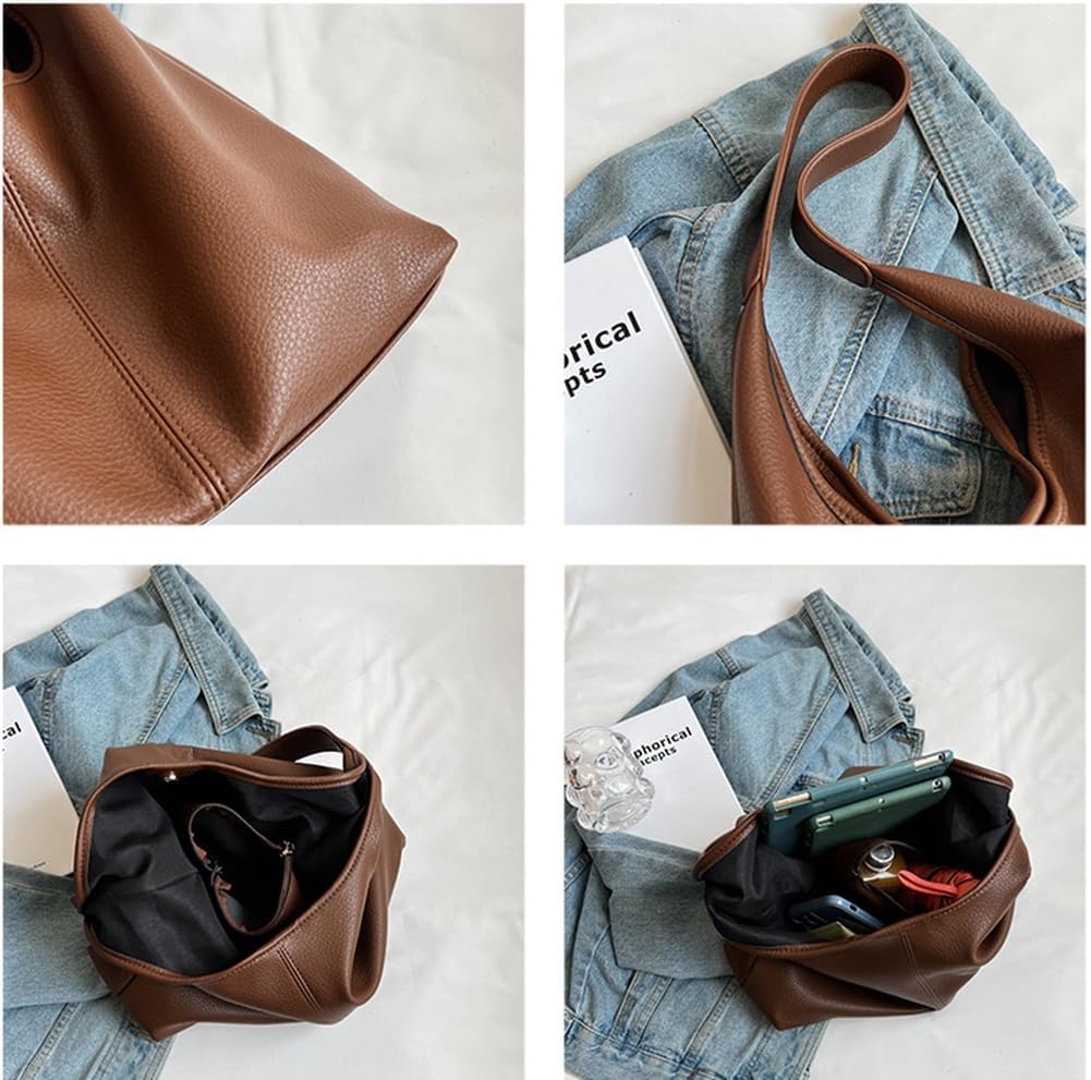 Slouchy Hobo Bags for Women Tote Bag Retro PU Leather Crossbody Bag Soft Shoulder Purses Large Capacity 2pcs Underarm Work College Travel Tote Handbag