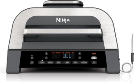 Ninja DG551 Foodi Smart XL 6-in-1 Indoor Grill with Air Fry, Roast, Bake, Broil, & Dehydrate, Foodi Smart Thermometer, 2nd Generation, Black/Silver