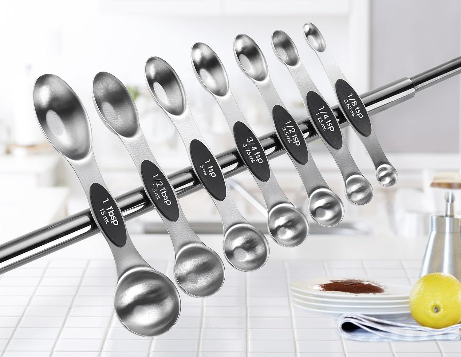 Customers find the measuring cups and spoons to be well-made and functional, with strong magnets that keep them together and stack neatly for storage. They are easy to use and read, and customers appreciate their durability, with one mentioning they hold up well in the dishwasher. Customers like that they wash up well and are easy to clean and store.