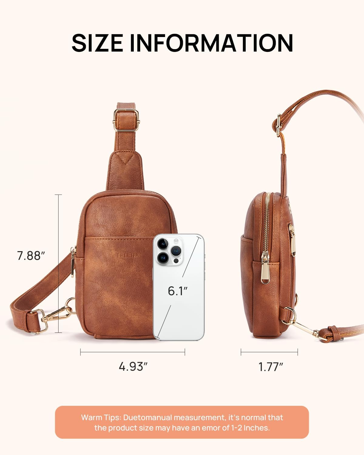 Telena Small Sling Bag for Women Leather Crossbody Fanny Packs Chest Bag for Women