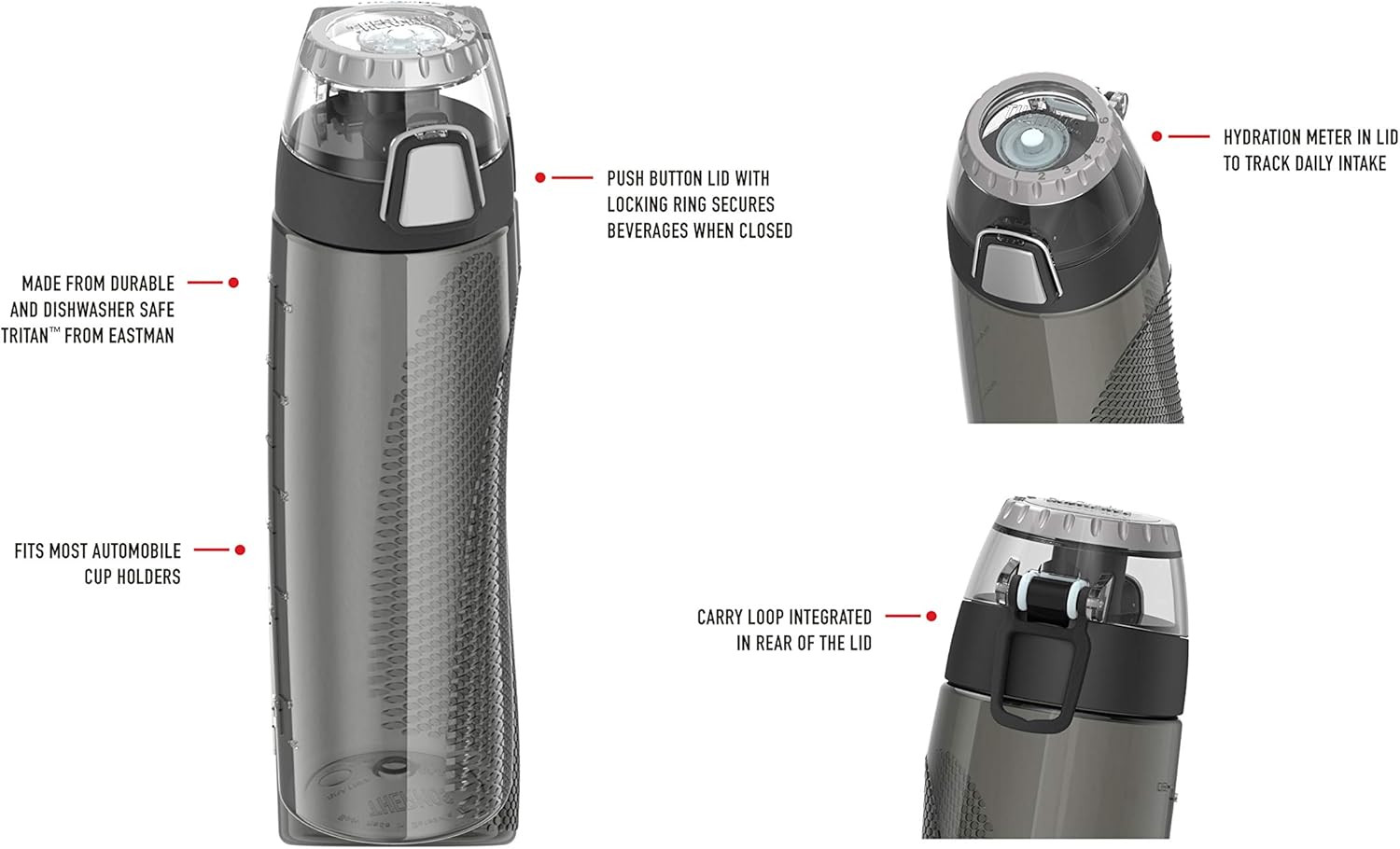 Thermos new hydration bottles give you the flexibility to choose what matters most. Nothing is more vital to staying healthy and fit than proper hydration. Thermos hydration bottles make it easy to stay hydrated throughout the day. They’re made of BPA free materials, reusable and built to last. Incorporated into the lid is a rotating intake meter to monitor your daily water consumption. With an ergonomic design that is comfortable to grip and a flip up carrying loop, Thermos hydration bottle are great for long walks, workouts, The Ride to work or wherever life takes you.