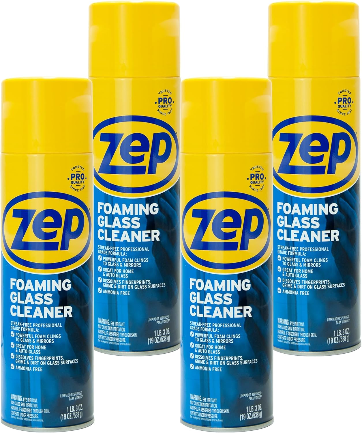 Zep Foaming Glass and Plexiglass Cleaner – 19 oz (Case of 4) ZUFGC19 – Foaming Formula Clings to Vertical Surfaces. Trusted by Pros